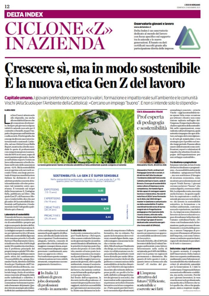 Ce lo racconta oggi in un'intervista la Direttrice di Alta Scuola per l'Ambiente, Prof.ssa Alessandra Vischi, in un'intervista su "L'Eco di Bergamo".